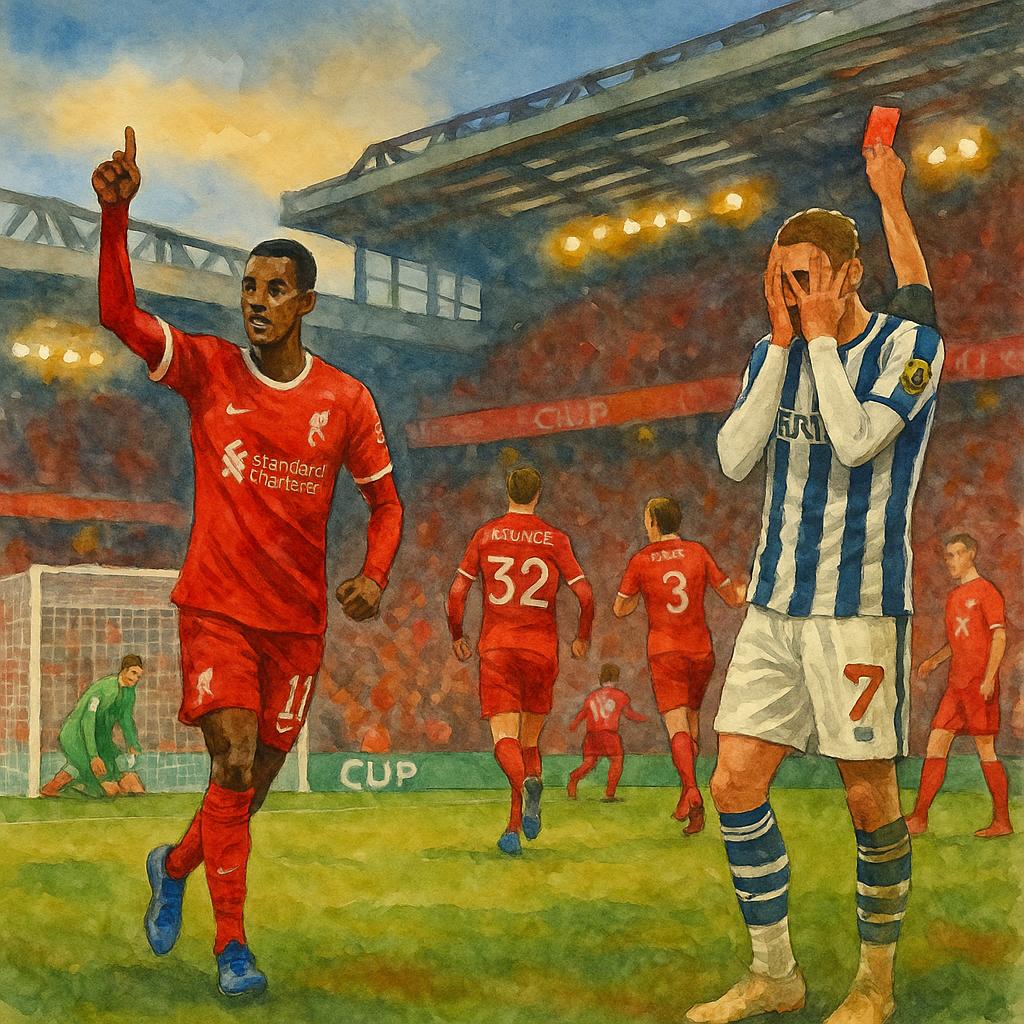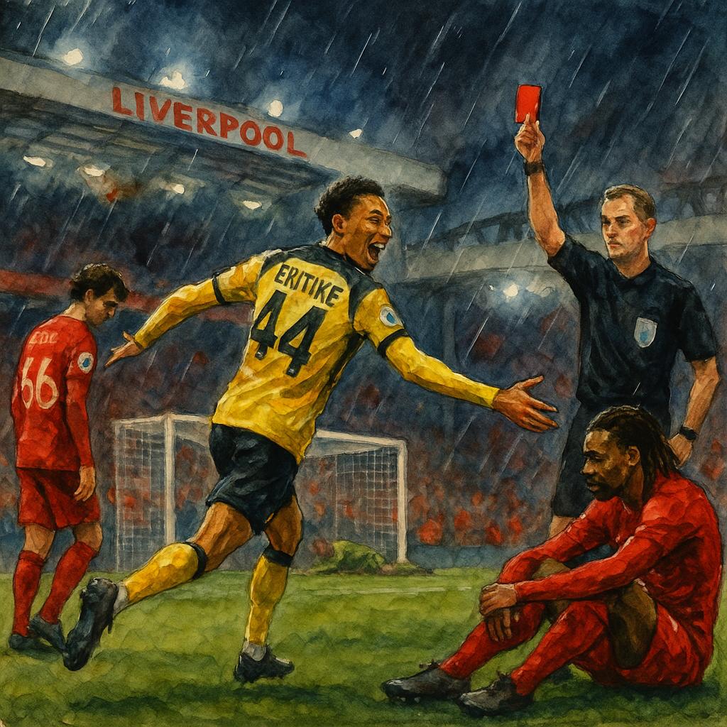 Liverpoolin dramaattinen ilta Anfieldillä Hugo Ekitikén sankarimaali ja punainen kortti muuttivat juhlan tragediaksi