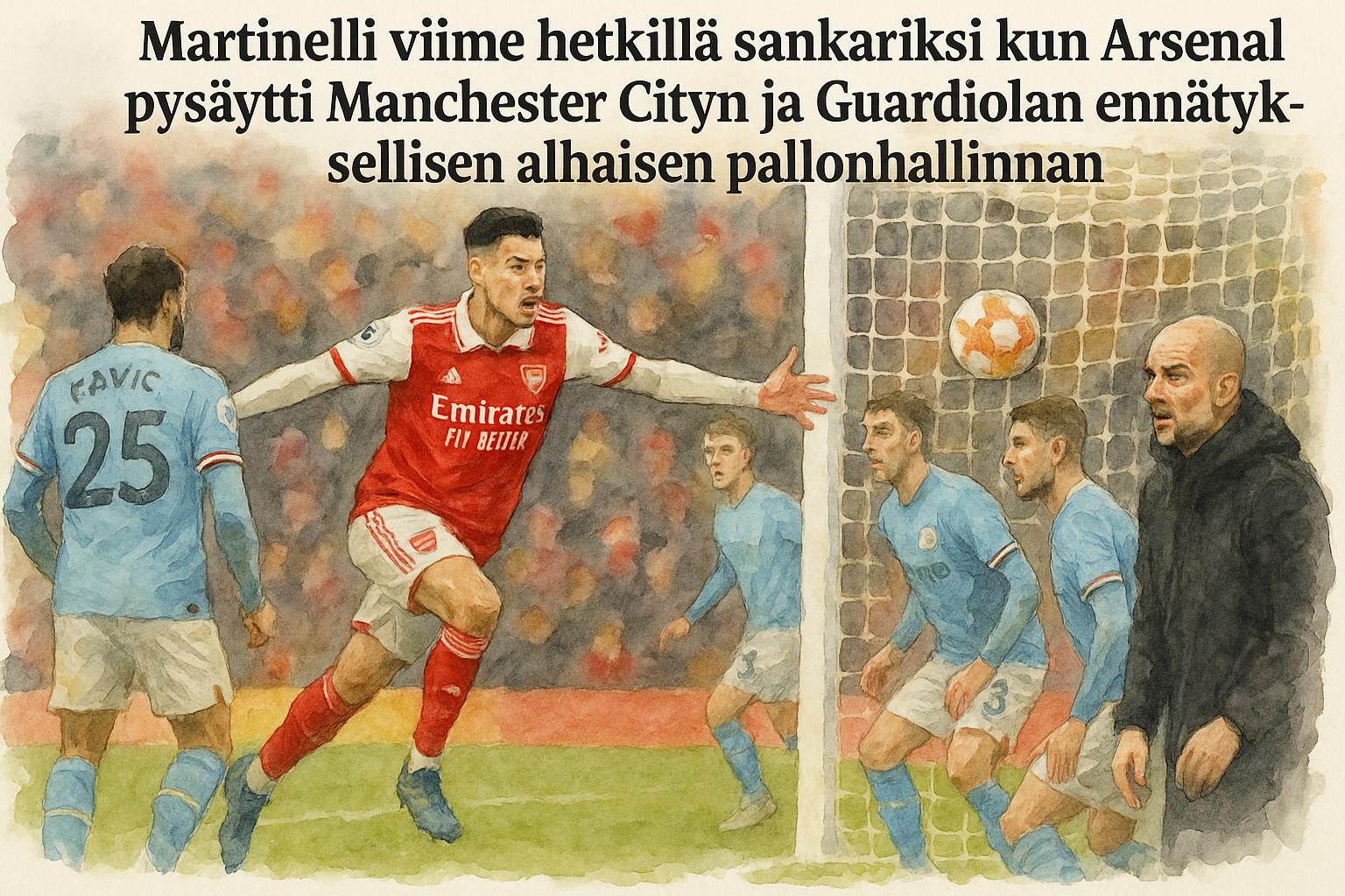 Martinelli viime hetkillä sankariksi kun Arsenal pysäytti Manchester Cityn ja Guardiolan ennätyksellisen alhaisen pallonhallinnan