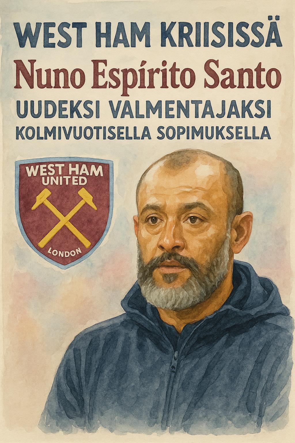 Sunnuntai toi Itä-Lontooseen uutisen, joka oli samaan aikaan odotettu ja kuitenkin hieman yllättävä: West Ham United on nimennyt Nuno Espírito Santon seuran uudeksi päävalmentajaksi. Kolmen vuoden sopimus sitoo portugalilaisen Hammersiin pitkälle tulevaisuuteen, mutta nykyhetki on kaikkea muuta kuin vakaa – joukkue roikkuu Valioliigan putoamisviivan tuntumassa.