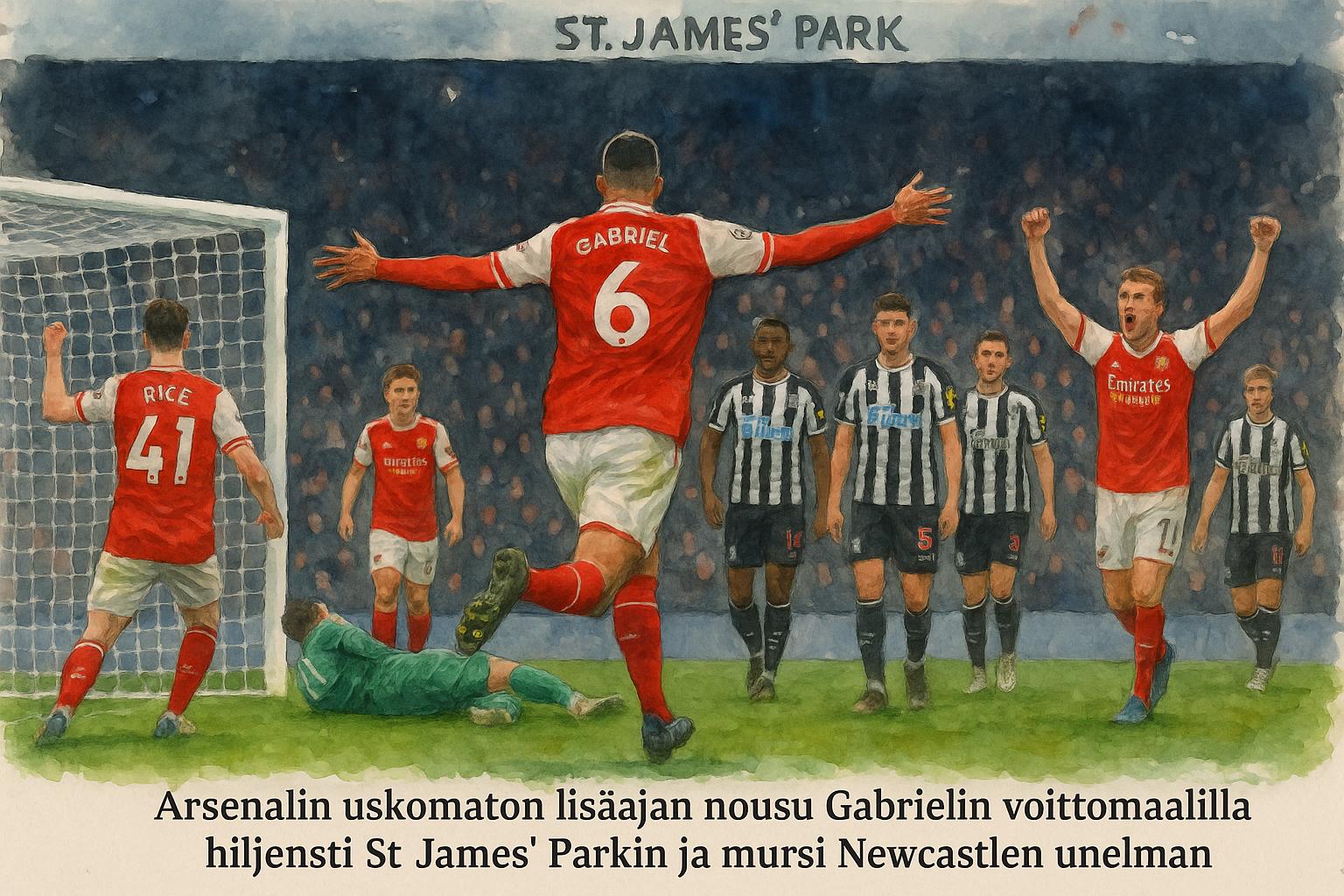 Arsenalin uskomaton lisäajan nousu Gabrielin voittomaalilla hiljensi St James Parkin ja mursi Newcastlen unelman